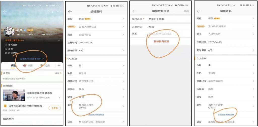 答:学生(用户)进入个人微博,“编辑资料”,对“教育信息”中的错误选项进行删除。然后“添加更多教育信息”,或,重新扫描活动二维码进入。