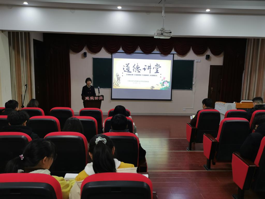 为进一步加强思想道德建设,提升师生道德素质。信阳校区开展了以“共同遵守社会公德”为主题的道德讲堂活动,全体教师和学生代表参加此次活动。