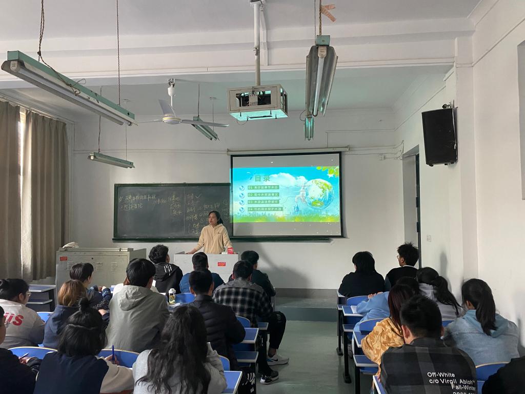 一、开展课堂宣讲。教师隋聚艳、李丹丹结合正在讲授的课程《水资源保护》和《水污染控制工程》的教学内容,分别向2019级生态班和2020级环工班共计156名学生详细讲解了树立水资源危机意识的重要性、防止水源污染的具体措施以及保障水体自身持续发展等水资源知识,加深了学生对水资源集约安全利用的认识。