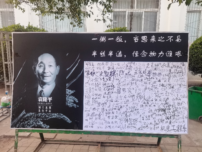 为深切怀念和致敬“杂交水稻之父”——袁隆平院士,5月27日,机电工程系在校师生自发组织“国士无双,先生千古”缅怀哀悼活动。