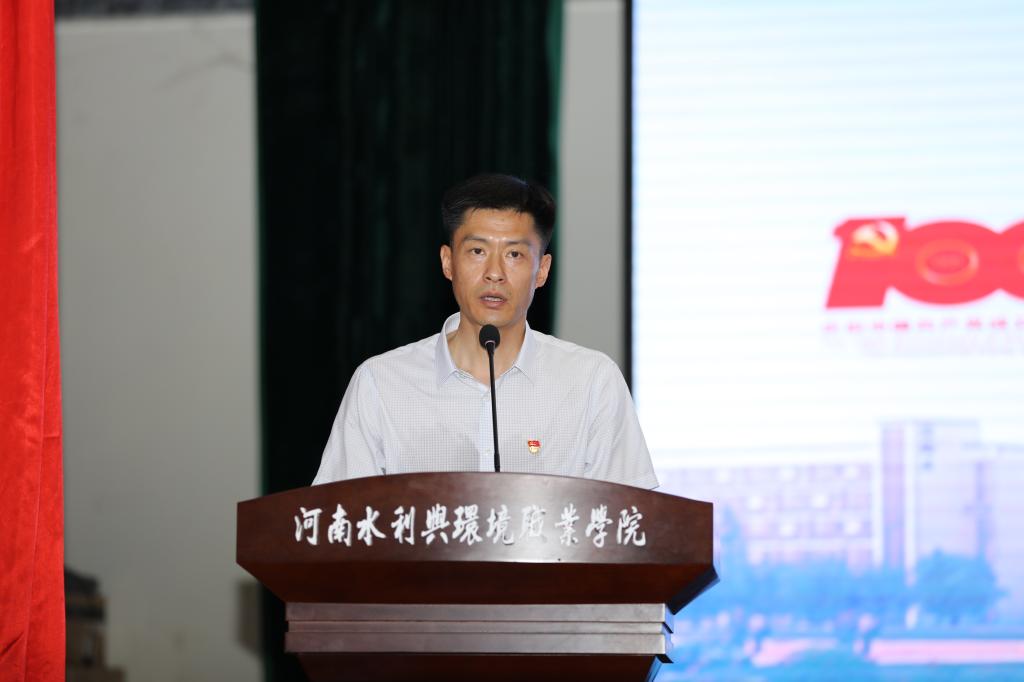 教师代表、水利工程系主任赵辰发言,希望同学们在毕业以后学会感恩和担当,规划好人生路径,传承好学校优良校风,以优异的成绩回报母校的培育、社会的希望和家长的期盼。