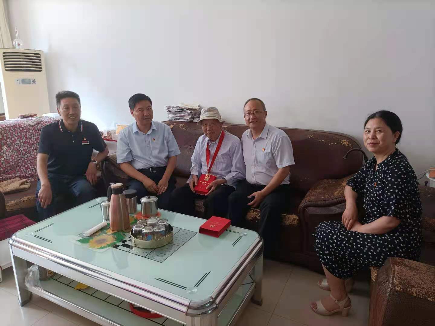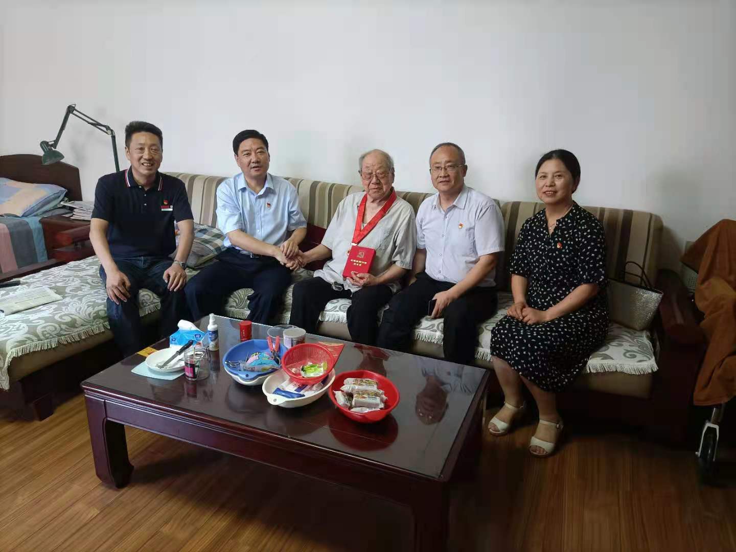 6月28日上午,省水利厅党组成员、副厅长、机关党委书记、一级巡视员武建新一行来我校走访慰问党龄超过50年的老党员,为他们颁发“光荣在党50年”纪念章,向他们转达习近平总书记和党中央的亲切关怀,并代表水利厅党组向老党员致以诚挚问候和崇高敬意。厅机关党委副书记霍继伟、校党委书记王立正及组织人事部门负责同志陪同参加慰问活动。