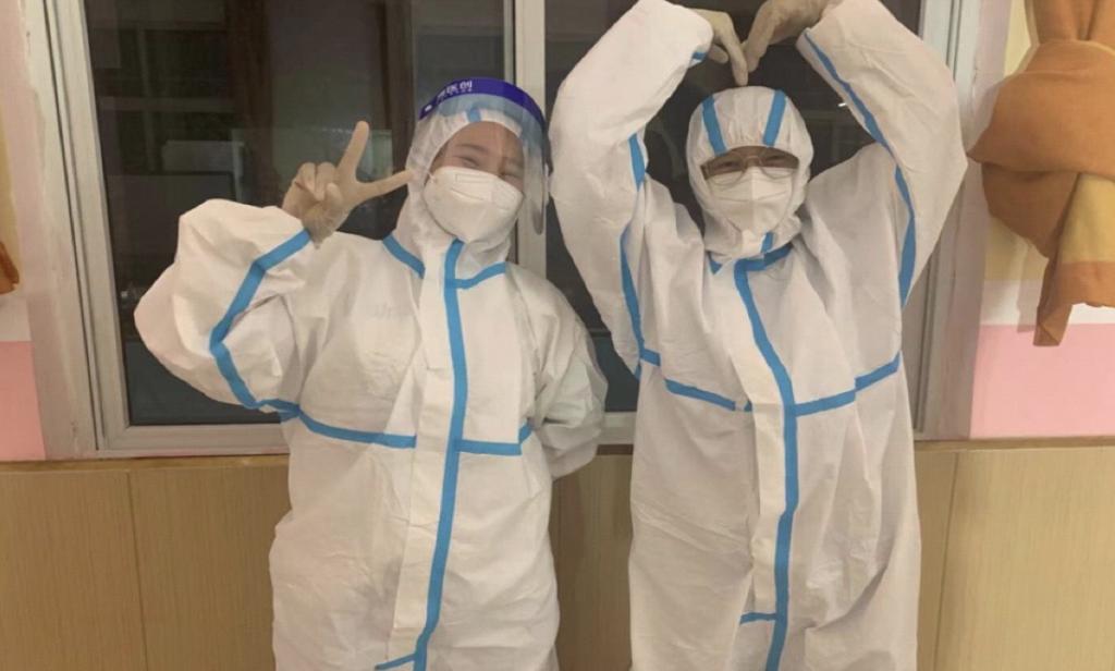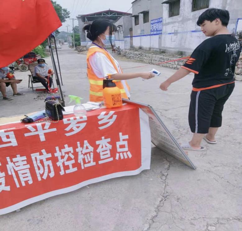 20级跨境电子商务1班学生王娜参与信息登记、维持秩序、测温消毒、卡点值守等志愿服务活动。