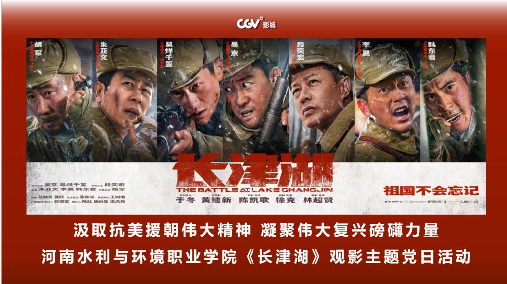 为弘扬抗美援朝保家卫国精神,推进党史学习教育走深走实,10月25日-26日,我校以“汲取抗美援朝伟大精神 凝聚伟大复兴磅礴力量”为主题,组织各党总支、支部220余名党员走进电影院,集体观看中国共产党成立100周年献礼影片《长津湖》。