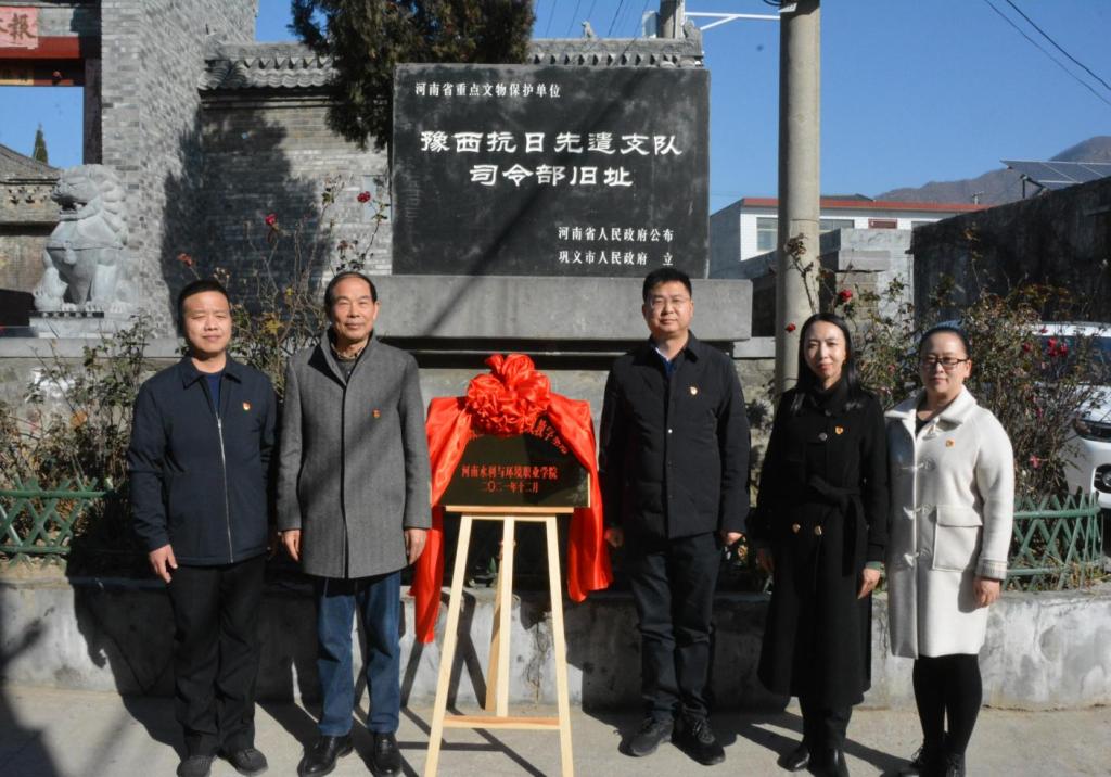 12月21日上午,我校思想政治理论课实践教学基地在豫西抗日先遣支队司令部旧址揭牌。思想政治理论教学部主任袁国立和巩义市人民政府党组成员、副市长、涉村镇党委书记鲁尧共同为基地揭牌,签署了基地共建协议。巩义市涉村镇党委副书记、镇长姚军安、党委副书记焦天然和思想政治理论教学部副主任郝思惠、办公室主任邵琳参加了仪式。双方就加强合作进行了深入交流,在多个方面达成了共识,并一同参观了豫西抗日先遣支队司令部旧址。