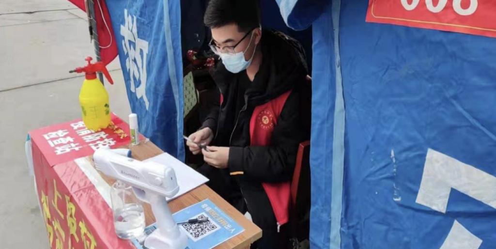 贺子康主要负责社区进出人员的信息登记,并协助开展疫情防控相关知识宣传。他说:“新时代青年应义不容辞的加入到疫情防控志愿服务活动中,以严谨的工作态度完成好各项工作,为抗击疫情贡献力量。”