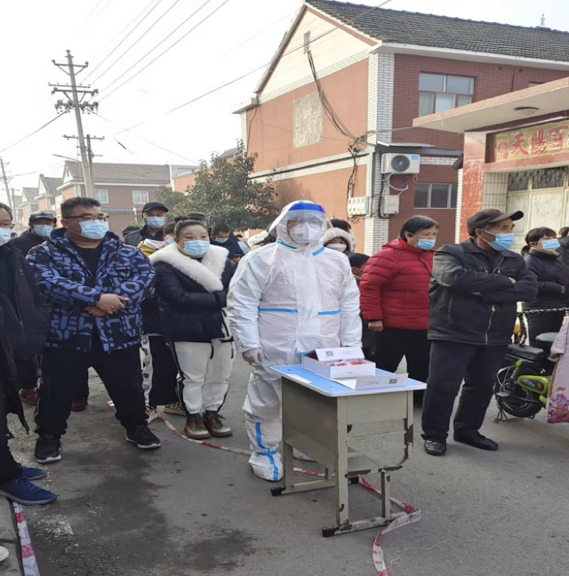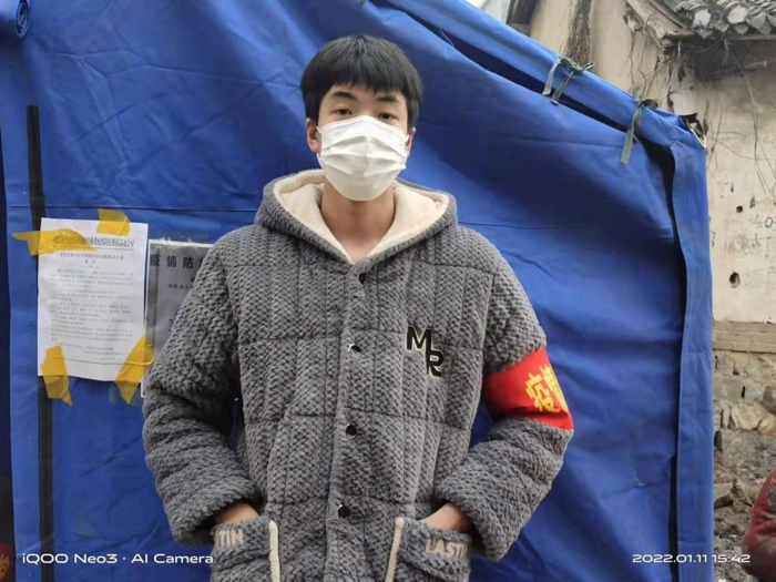 “疫情不退,我们不退,有疫情的地方就是我们的战场。”在安阳市林州市桂园社区小菜园村,2021级电气2班学生路滨珲协助村干部做好分发试剂、扫码检测等志愿服务工作。
