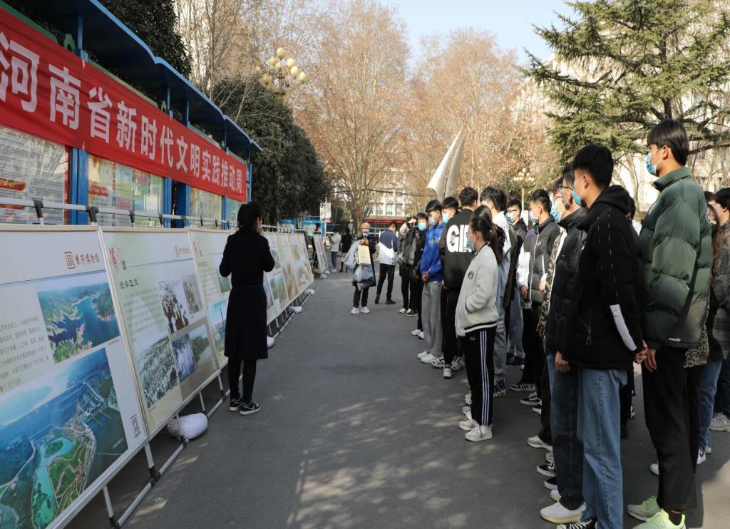 每年3月的第一周为“河南省新时代文明实践推动周”,为积极响应全省广泛开展文明实践活动的号召,传承民族文化,弘扬民族精神,讲好黄河故事,进一步加强大学生思想政治教育。3月2日,我校思想政治理论教学部和思政课实践教学基地黄河博物馆共同举办“河南省新时代文明实践推动周”活动——黄河文化主题展,促进黄河文化走进校园。校党委副书记李连水、思政部有关负责同志、教师代表,黄河博物馆办公室主任刘逸凡、讲解员及相关工作人员及广大学生参观了展览。