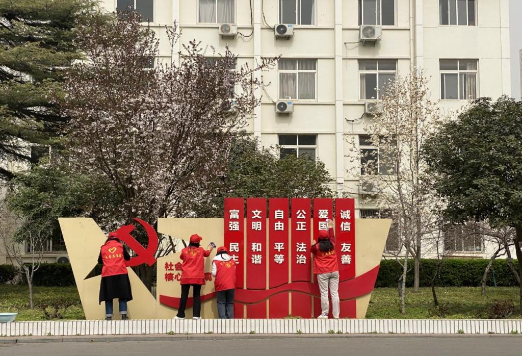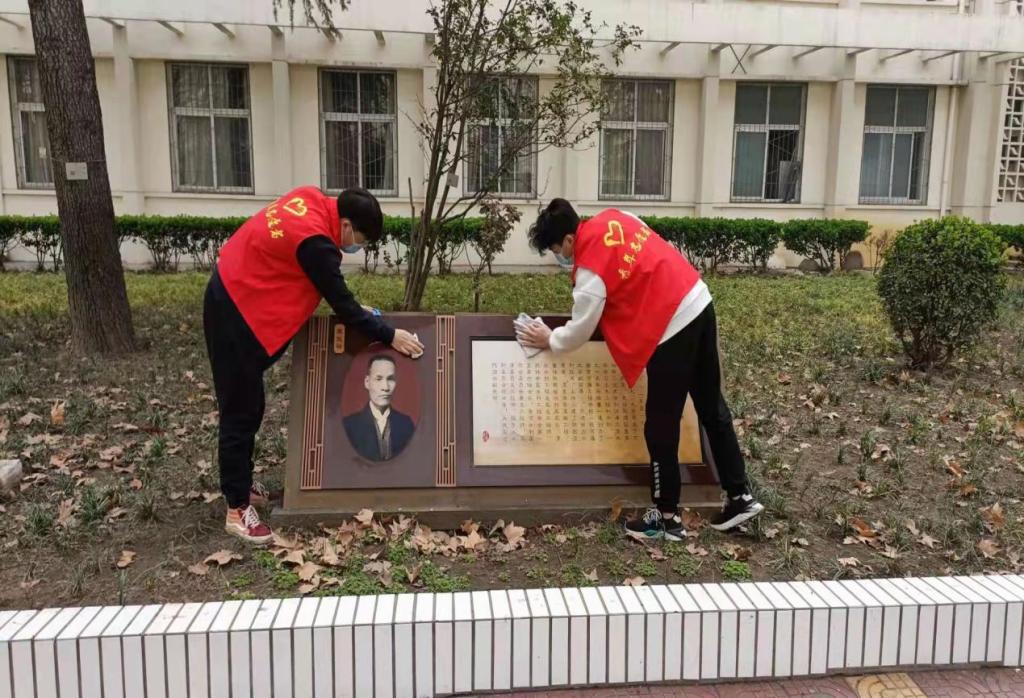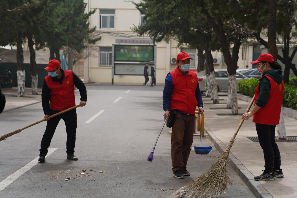 活动中,54名党员教师和团学干部组成志愿服务队,重点清理卫生死角,以实际行动美化校园环境。大家或是手拿扫帚清扫枯叶,或是手拿抹布擦拭宣传栏,或是整理教学区、宿舍区前停放的自行车。经过三个小时的辛勤劳动,校内主干道焕然一新,为生机勃勃的春天增添了一份美好。