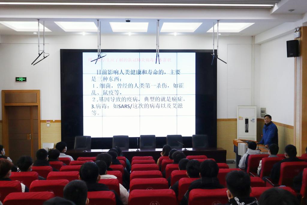 蒋彦成以“新冠疫情带来的新思考”为题,向师生介绍了新冠病毒的基本知识和防护要点,讲述了寒假期间我校学生积极投身家乡防疫一线的典型事例,对大家用实际行动展现新时代青年的担当和作为表示肯定。他强调,同学们要铭记生命至上、举国同心、舍生忘死、尊重科学、命运与共的伟大抗疫精神,要以抗疫英雄为榜样,做担当时代重任的有为青年;要充分认识疫情形势的严峻性,严格遵守学校各项防疫规定,积极配合防疫措施落实,共同筑牢校园安全防线。