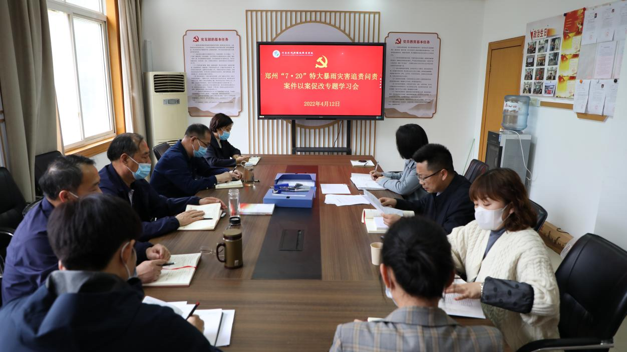 4月12日,党群第二党支部召开郑州“7·20”特大暴雨灾害追责问责案件以案促改专题学习会,支部党员及教职工参加。