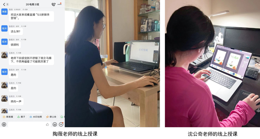 5月3日晚,信息工程系各位教师迅速开展线上教学准备工作,力求确保“教学上线,质量不下线”。电商数媒教研室主任陶薇老师上周在上课期间晕倒,这让20电商3班的同学着实捏了一把汗。线上课程一开始,学生们纷纷询问陶老师的身体状况,得知陶老师经检查已无大碍,更觉得每节课程的背后都是老师们的辛苦付出在支撑,纷纷自觉保质保量完成学习任务,线上课程在这种内因驱动下,保证了教学效果。