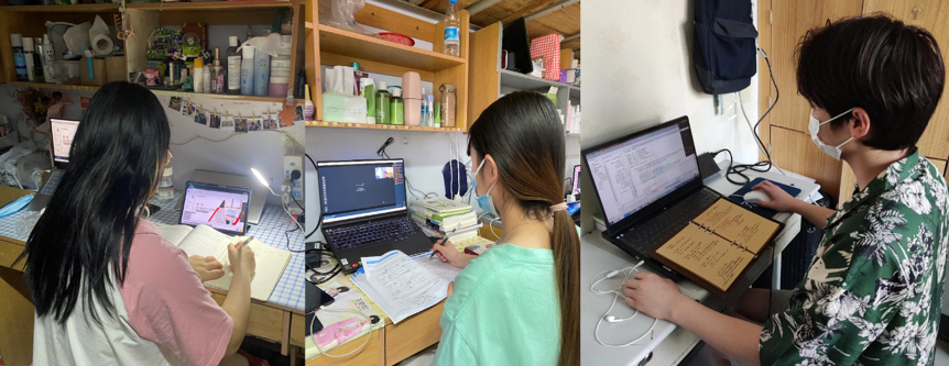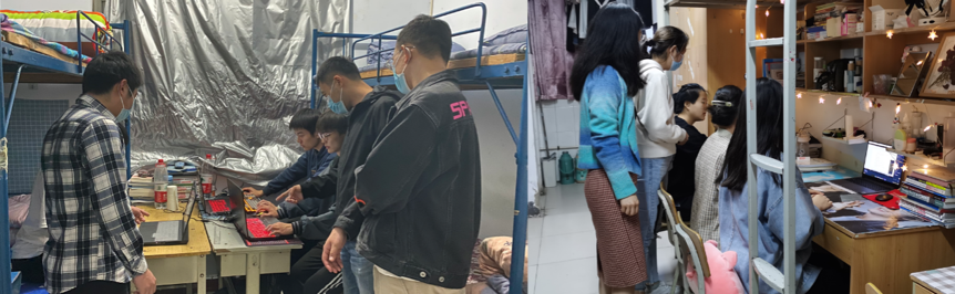 学生在宿舍中上网课