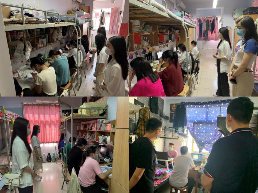 20级高职班主任程鹏飞、23届顶岗实习指导老师沙昉奕、李阁、刘亚茹进入宿舍了解学生就业准备情况