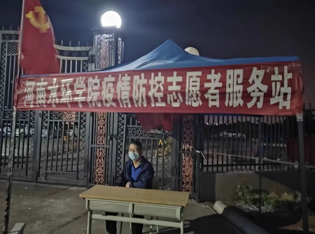 当得知社区防疫工作压力较大,人员不足,正在招募志愿者的消息时,居家上网课的他第一时间报名,主动加入党员志愿者先锋队,立即投入到小区的防疫工作中。在小区的出入口,他每天负责人员和车辆的检查工作,进门、出门必须扫码,严格控制外出1个小时,并主动查找小区封闭口出现的漏洞,及时上报社区,履职尽责。他说:“能在这样的关键的时刻,成为一名志愿者,感到无比自豪!”他就是系建筑工程教研室主任——侯广贤。