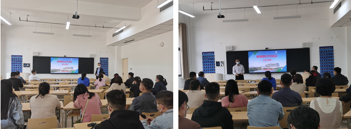 4月15日,土木工程系召开疫情防控紧急会议,成立由系党总支书记文琳、主任王玉振担任组长,副主任张东岭担任副组长,在航空港校区的38名专兼任教师全员参与的疫情防控工作小组。会议对校内师生全员核酸检测、校内2219名学生的网格化精准管理、校内教师线下教学、校外居家教师线上教学及疫情动态信息管理等工作进行统筹安排。坚持静态管理期间,每天下午召开工作总结会,对当日工作内容进行梳理,对疫情防控工作中各项细节不断加以完善,时刻保持应急应战状态,精准管理,筑牢抗疫“生命线”。