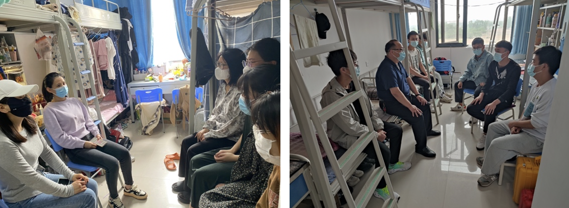 学生不停学,教师不停教,有序推进线上教学工作,保质保量完成教学任务。为精准掌握学生的学习、生活及思想状况,系留校辅导员和班主任们深入学生宿舍,与学生亲切交流,叮嘱学生要服从学校安排,戴好口罩,严格执行疫情防控期间相关要求,保持好宿舍卫生,定期通风,劳逸结合,锻炼身体,养成良好作息习惯,按时上课,提高学习效率。