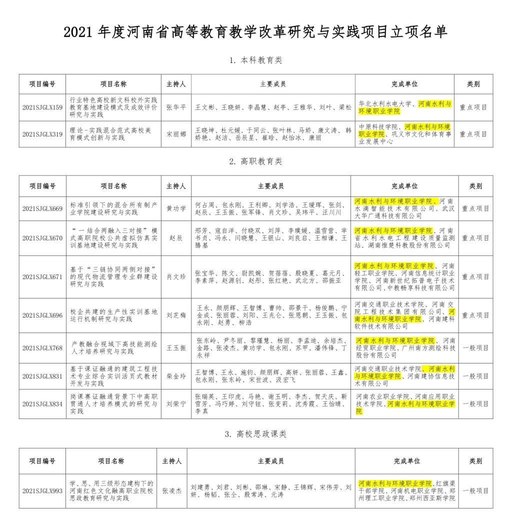 近日,河南省教育厅下发了《关于公布2021年度河南省高等教育教学改革研究与实践立项项目的通知》,我校主持和参与申报的10个项目获批立项。本科教育类项目参与2项,均为重点项目;高职教育类项目主持4项、参与3项,其中重点项目4项、一般项目3项;高校思政课类项目主持1项。