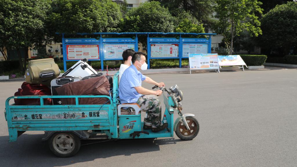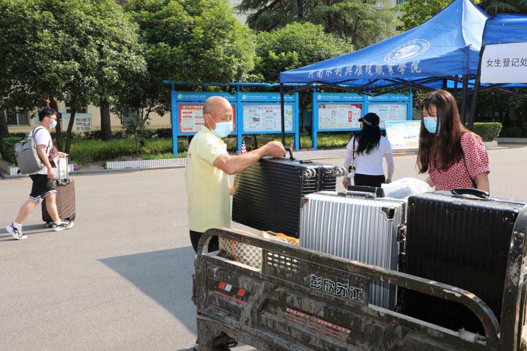 志愿者帮助返校学生搬运行李