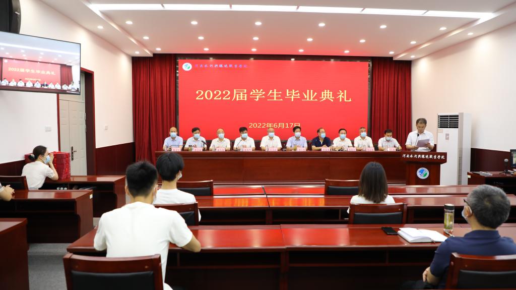 6月17日上午,我校2022届学生毕业典礼在花园路校区学术报告厅举行。毕业典礼采用“线上+线下”的方式举行。校领导班子全体成员,教务处、学生处、各系主要负责人,辅导员代表和2022届毕业生代表参加典礼。典礼由党政办公室主任张志远主持。
