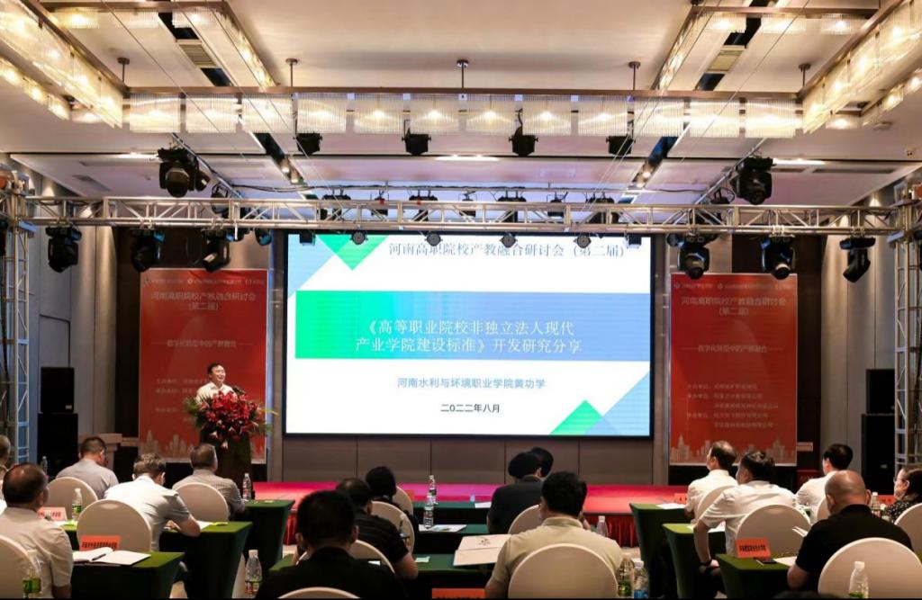 8月23日,副校长黄功学教授受邀参加第二届河南高职院校产教融合研讨会,并在研讨会上交流分享了《高等职业院校非独立法人现代产业学院建设标准》的开发研究情况。