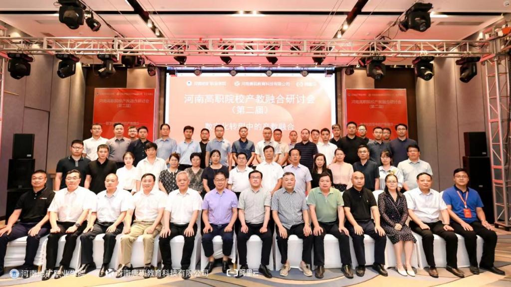 本届河南高职院校产教融合研讨会,由河南地矿职业学院主办,阿里云计算有限公司、河南唐砚教育科技有限公司承办,科大讯飞股份有限公司、深信服科技股份有限公司协办,研讨会邀请了河南省教育厅领导,省内外研究机构专家及河南省21所高等职业院校领导及相关业务负责人,分别就如何创新产教融合机制,提升合作效果;如何以中部地区高质量发展为导向,加强校企深度合作,校企资源共享,培养更多高质量应用型创新人才等课题进行了深入讨论。