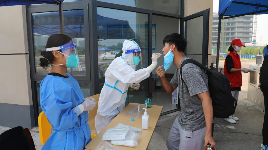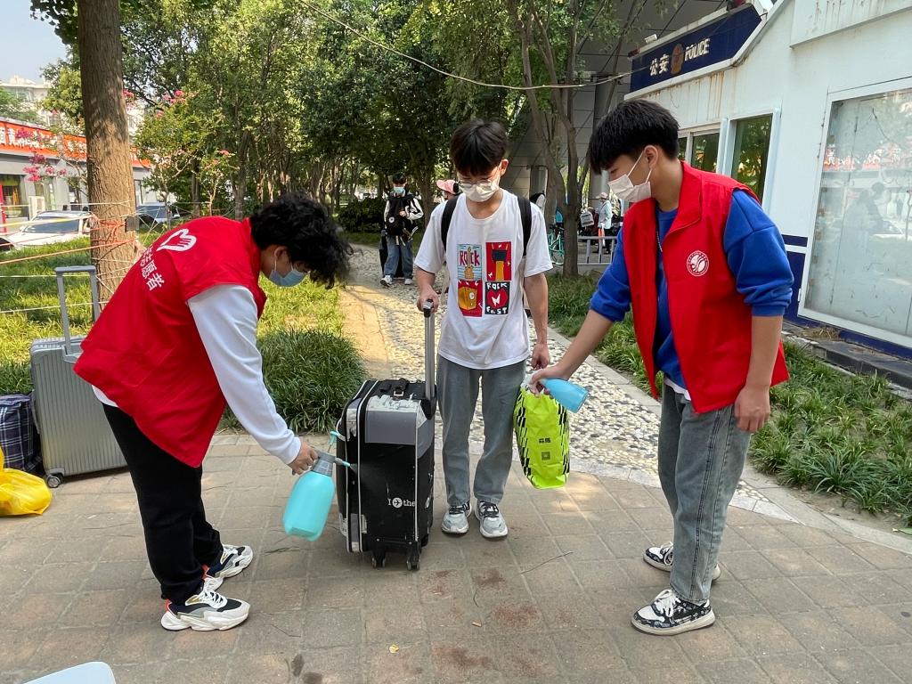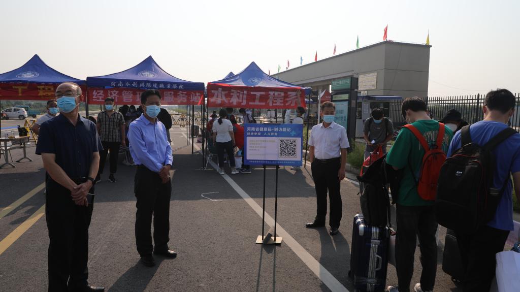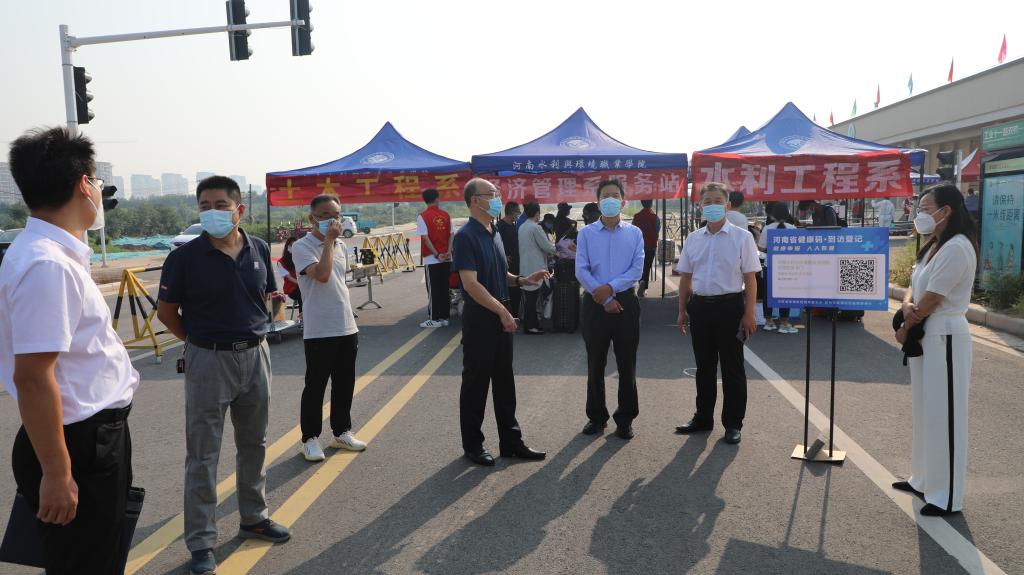 当天上午,校长李广慧、副校长惠大众等到现场检查指导返校工作,再次走访关心慰问工作人员、志愿者和返校学生。