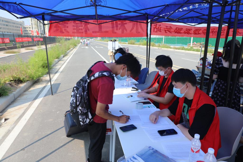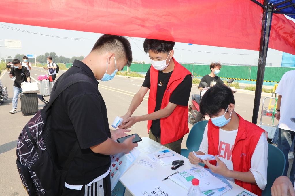 9月12日,是我校秋季学期学生返校报到的第二天。清早,工作人员和志愿者就等候在各个岗位,第一时间为返校报到学生提供办理手续、搬运行李、答疑解惑等服务。