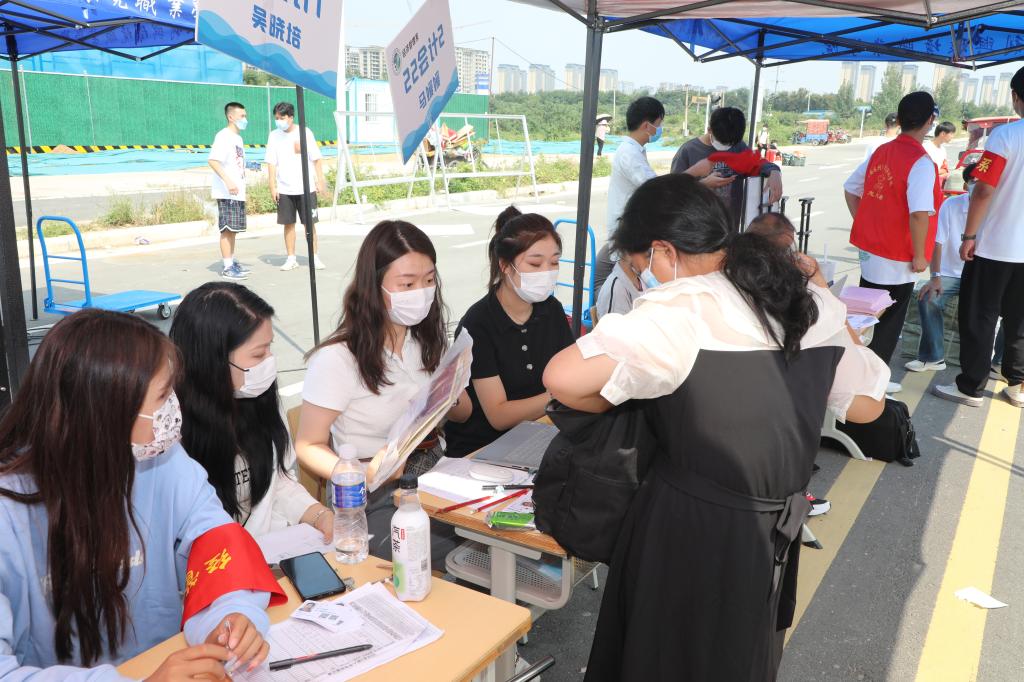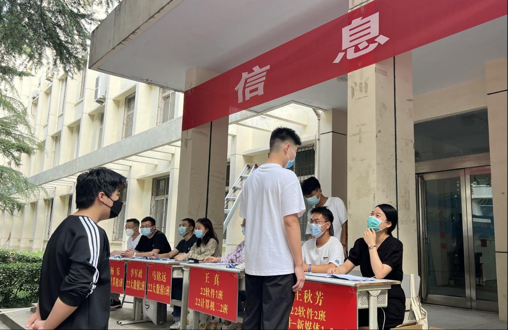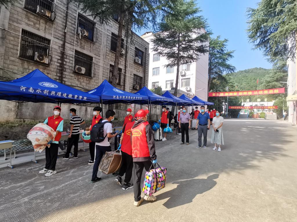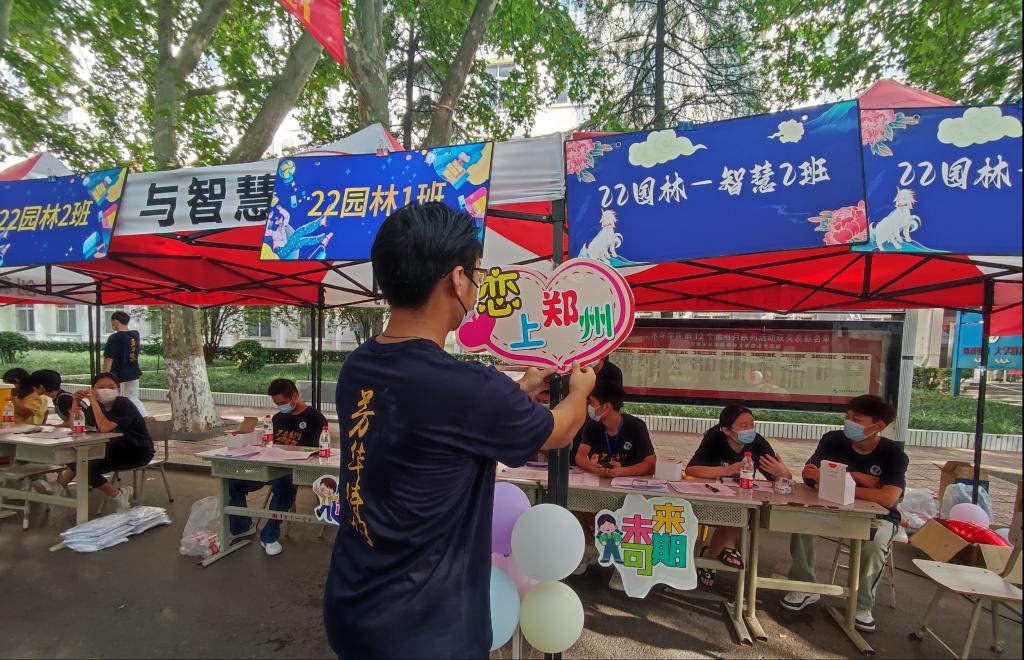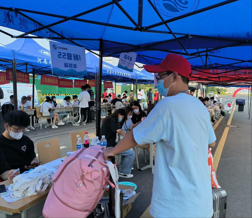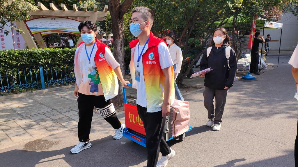 在各系、信阳校区新生接待现场,工作人员各司其职,密切配合,热情的志愿者们身着红色马甲,主动帮助新生搬运行李,系领导、辅导员耐心解答各类问题。现场还设置了多个特色打卡点,为新生们留下了最暖心的校园印象。