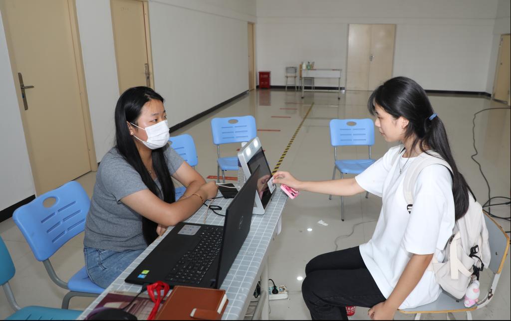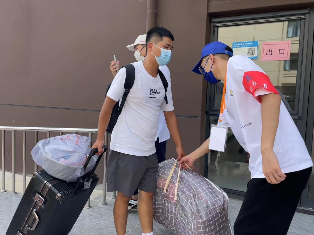 新生经过测温、扫码、消杀等系列流程进入学校。校内设置核酸检测点,第一时间为到校新生提供核酸检测服务。