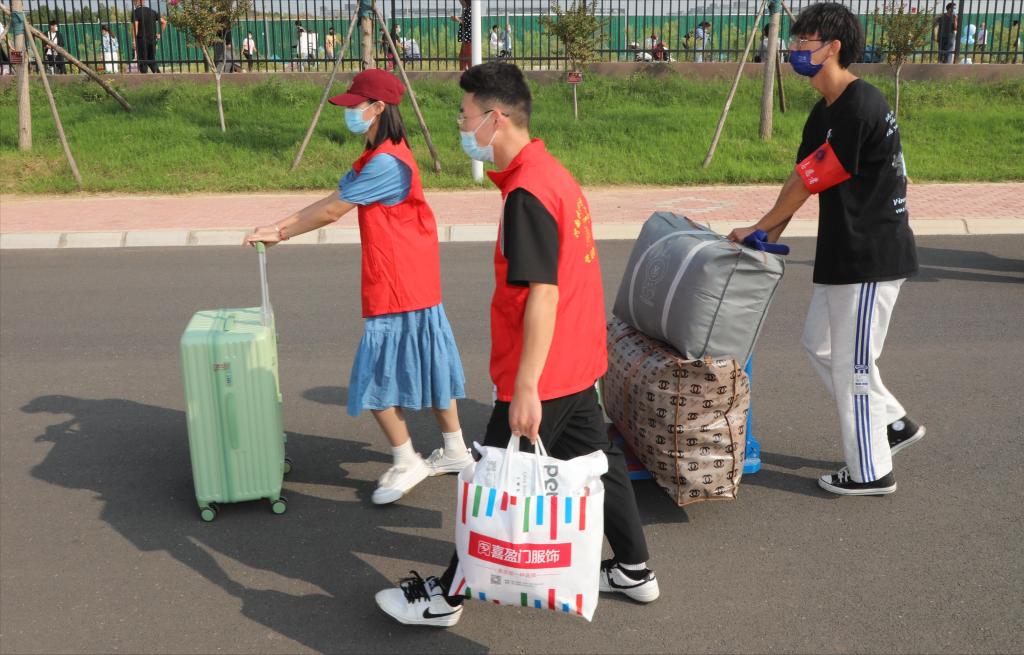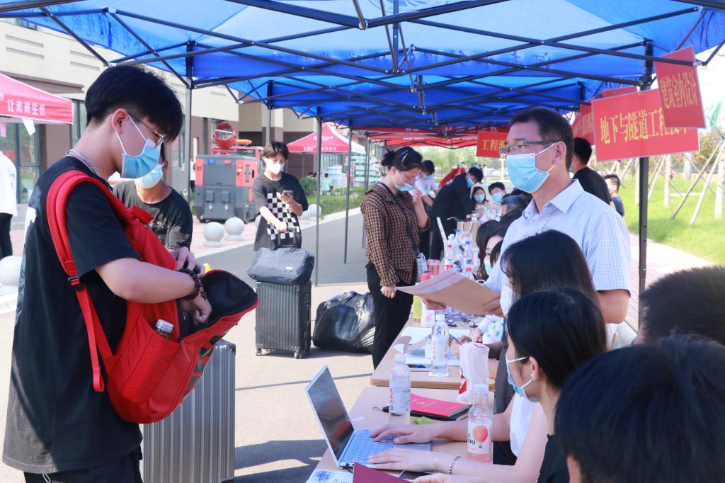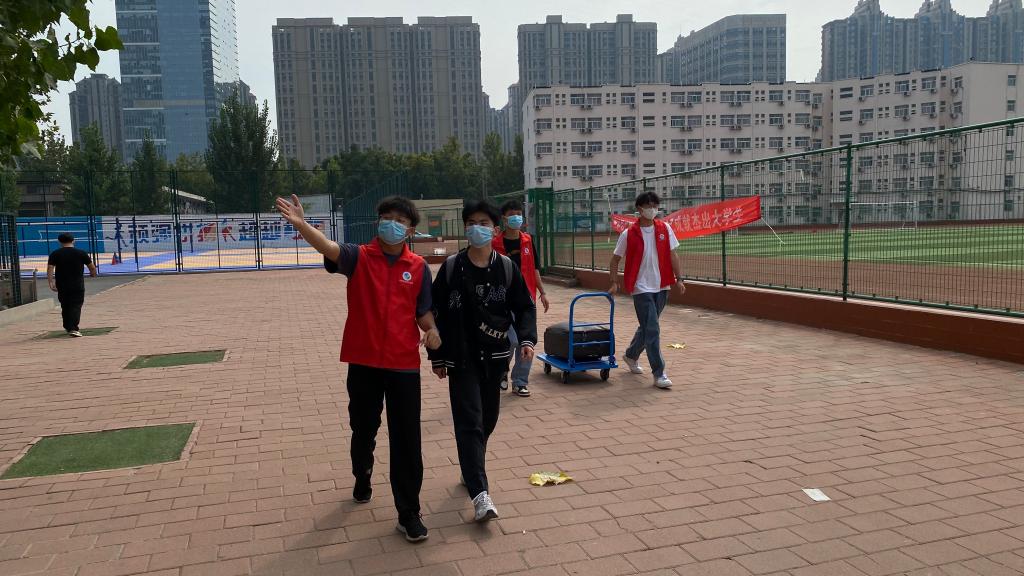 学校在地铁站等交通枢纽设置了迎新接待点,为新生提供接站、带路等暖心服务。