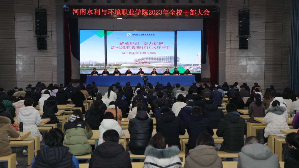 2月10日,我校在花园路校区大礼堂召开2023年全校干部大会,会议主题是“解放思想、奋力拼搏,高标准建设现代化水环学院”。校长李广慧出席会议并讲话,校领导张凌杰、惠大众、黄功学、蒋彦成、张志淮、魏义军、赵广杰出席会议。会议由党政办公室主任张志远主持。