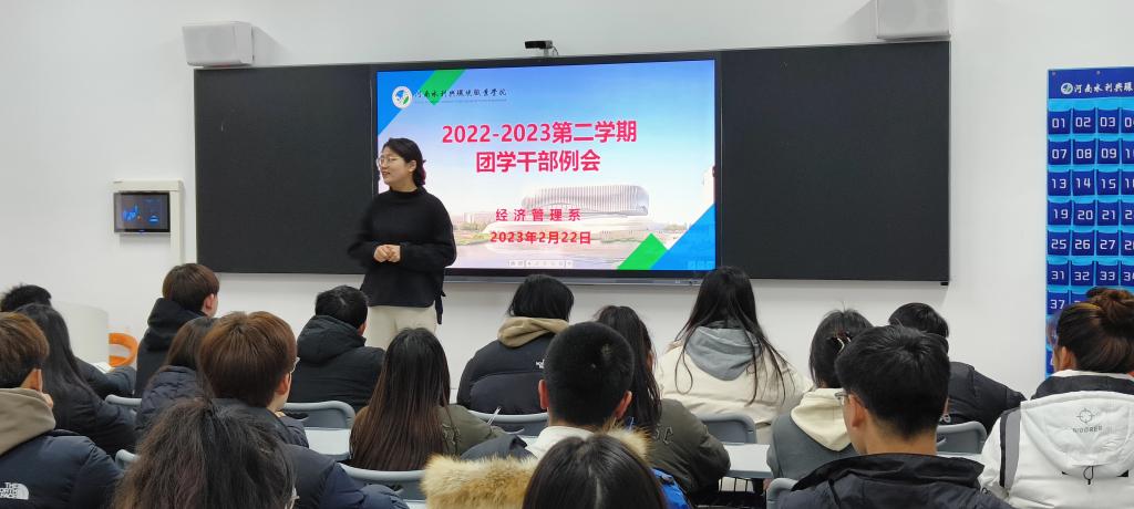 2月22日,经济管理系召开新学期团学干部例会,系全体团学干部参加。