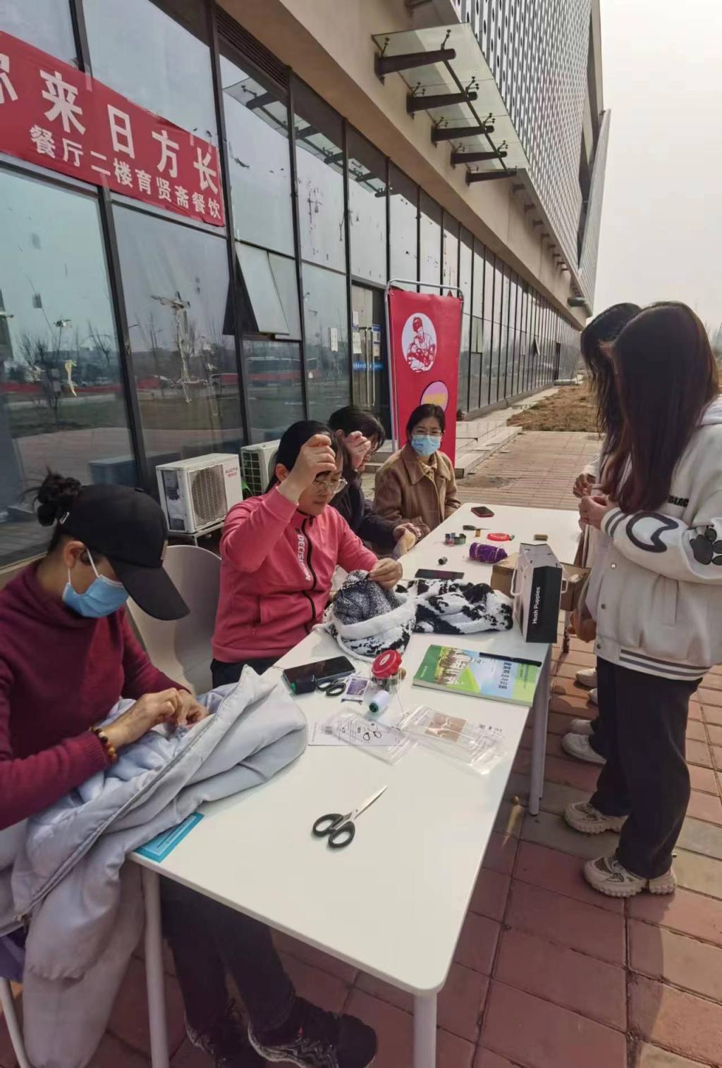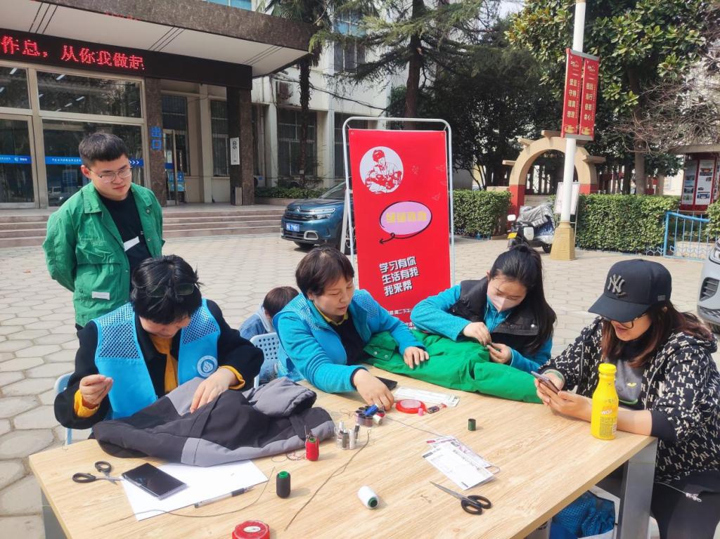 在第60个全国“学雷锋纪念日”之际,我校教辅党总支在花园路校区、航空港校区开展为期3天的“学雷锋”爱心缝补志愿服务活动,为上百名学生献爱心送温暖。