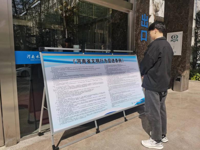 一是在花园路校区图书馆大厅举办“新时代新风尚新生活”专题书展,展出《新时代新思想》《中国榜样》《出彩河南人》《雷锋传记》等主题书籍33种,引领广大师生学习模范榜样,传播正能量,弘扬新风尚。二是在花园路校区和航空港校区图书馆前摆放《河南省文明行为促进条例》展板,引导师生树立文明理念,践行文明行为。三是组织开展红色电影《我和我的祖国》观影活动,激发学生的爱国情怀。