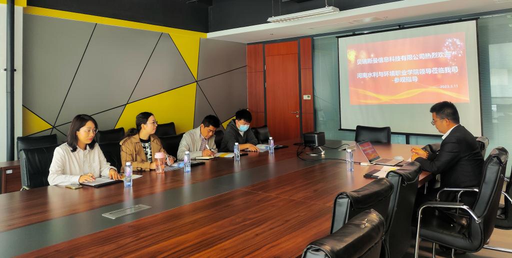 在江苏贝瑞斯曼信息科技有限公司,公司招聘事业部招聘总监王震毅介绍了公司的发展历程、企业文化、主要业务、发展方向、招聘需求等,双方就校企合作、实习就业进行了探讨。钟含一行实地参观了公司南通分部,了解了业务流程、工作环境、薪资待遇、住宿条件等情况。