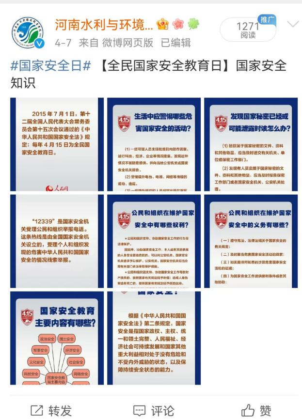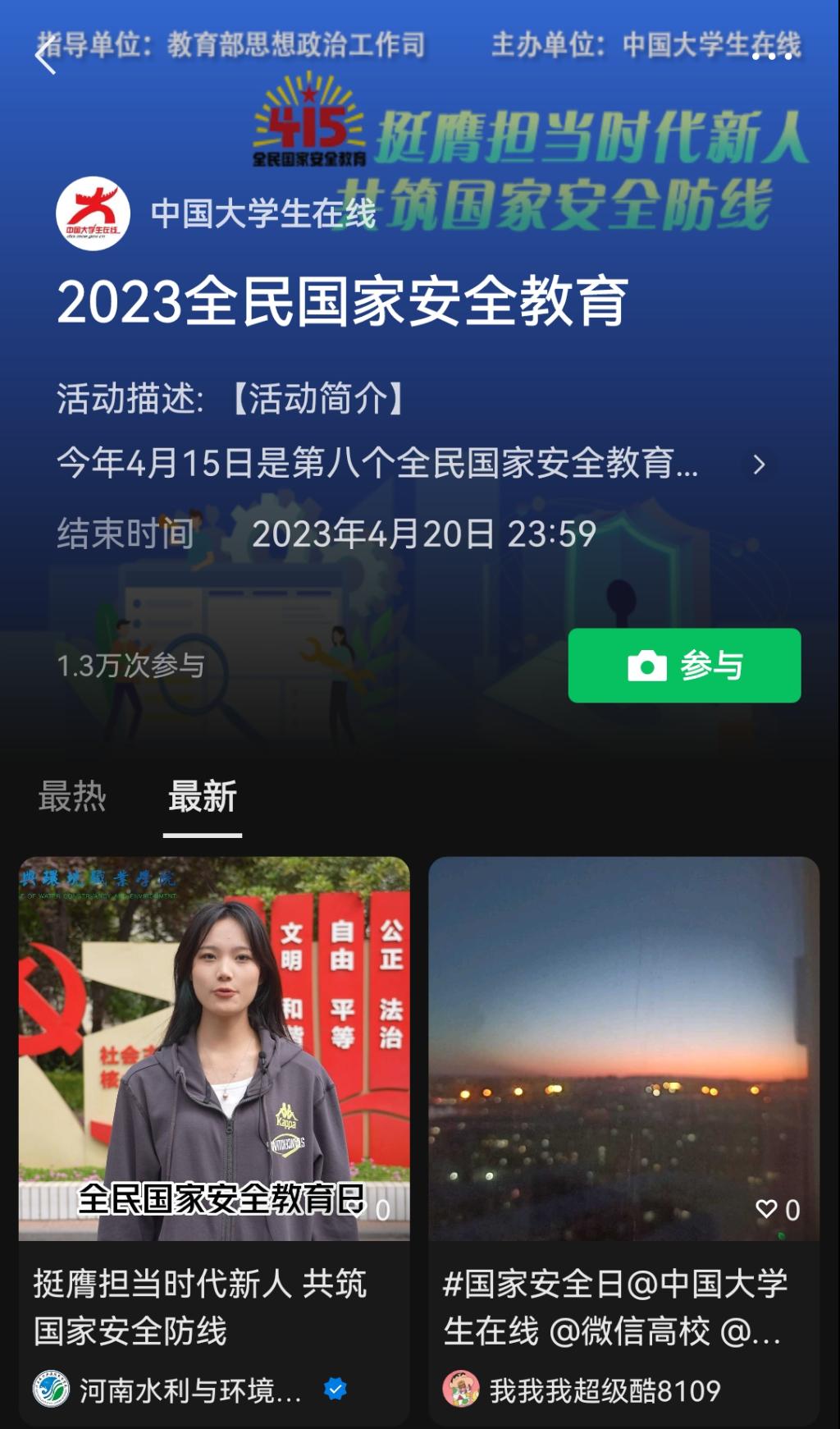 结合实际,强化宣传教育实效。制作《挺膺担当时代新人 共筑国家安全防线》原创视频,开设国家安全教育专栏,通过“网、微、抖、屏”等全媒体途径,突出宣传国家安全、网络安全、公共卫生安全等内容,利用户外电子屏滚动播放主题宣传标语,营造了人人维护国家安全的良好氛围。