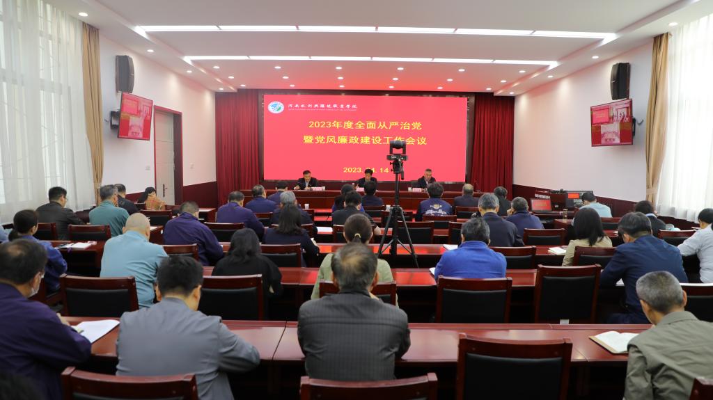 李广慧代表学校党委就2023年学校全面从严治党工作提出明确要求。他指出,全体党员干部要解放思想,深刻理解全面从严治党的内涵,坚决贯彻落实党中央和省委决策部署,保持政治定力,深入推进“创新驱动、科教兴省、人才强省”战略,根据高等职业学校发展特点,对标我校实际情况,严格落实全面从严治党新要求。他强调,一要拒绝“躺平”,坚守责任担当,做到清正廉洁;二要切实提高政治站位,持续深入学习贯彻党的二十大精神,坚持不懈用习近平新时代中国特色社会主义思想凝心铸魂,捍卫“两个确立”,增强“四个意识”,坚定“四个自信”,做到“两个维护”;三要主动防范化解各类风险,把校园安全和意识形态安全摆在首位,以高标准网格化管理确保校园安全稳定;四要持之以恒正风肃纪,锲而不舍落实中央八项规定及其实施细则精神,把纪律建设摆在更加突出位置,切实履行“一岗双责”,强化以案促改警示教育,做好党风廉政宣传教育工作,推动党风廉政建设全面提质;五要扎实开展学习贯彻习近平新时代中国特色社会主义思想主题教育,加强党的创新理论武装,不断提高马克思主义理论素养,为奋进新征程凝心聚力,踔厉奋发、勇毅前行,推动学校事业高质量发展。