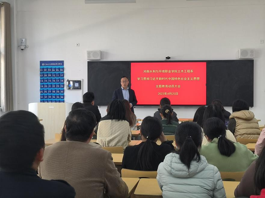 4月25日,土木工程系召开专题会议,传达学习贯彻习近平新时代中国特色社会主义思想主题教育动员大会精神,并对系部贯彻落实工作进行部署。系党总支副书记、主任王玉振主持会议,全体教师参加。