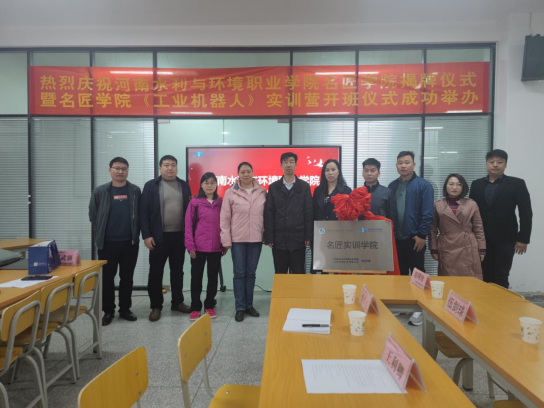 4月24日上午,机电工程系举行名匠实训学院揭牌暨“工业机器人”实训营开班仪式,名匠实训学院副院长黄萍,江西科骏实业有限公司营销中心华中区总经理许宝玉、区域总监高翔、运行总监刘智,系主任王利卿、党总支书记王建军及有关专业带头人等参加。