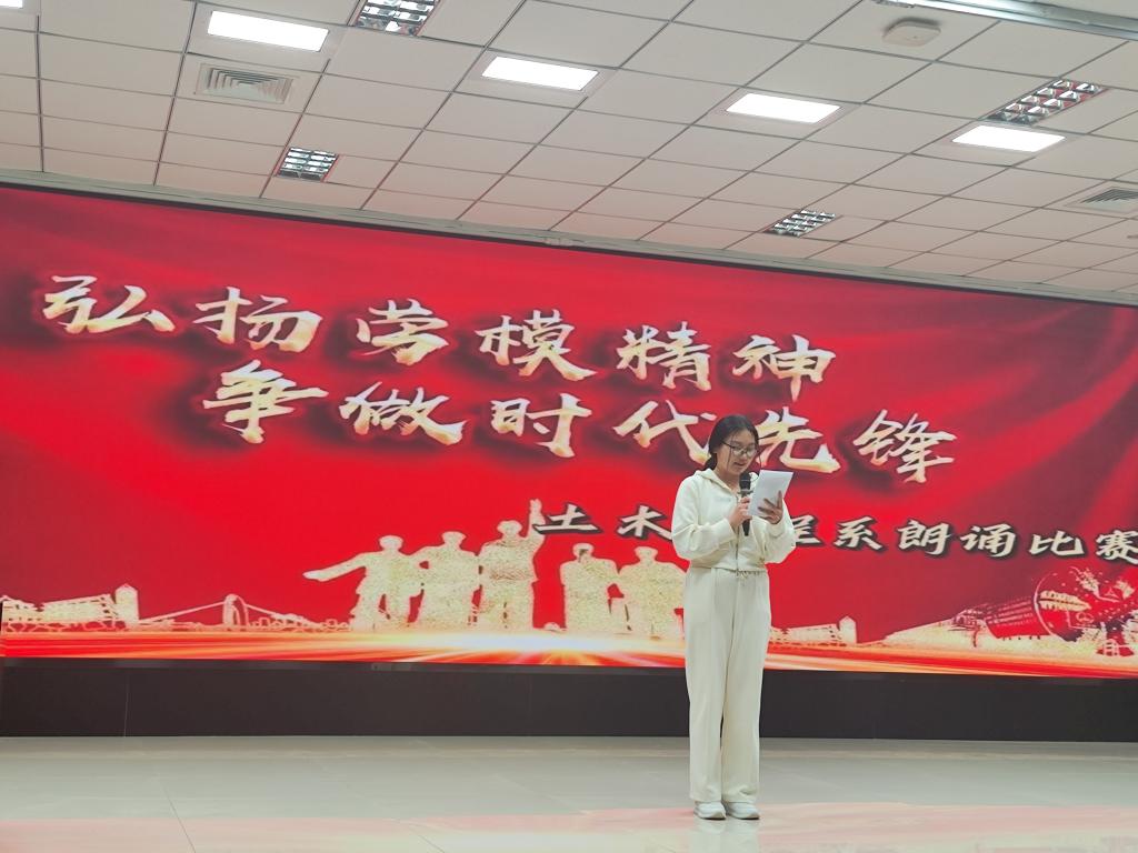 5月4日,土木工程系开展“弘扬劳模精神,争做时代先锋”主题朗诵比赛。