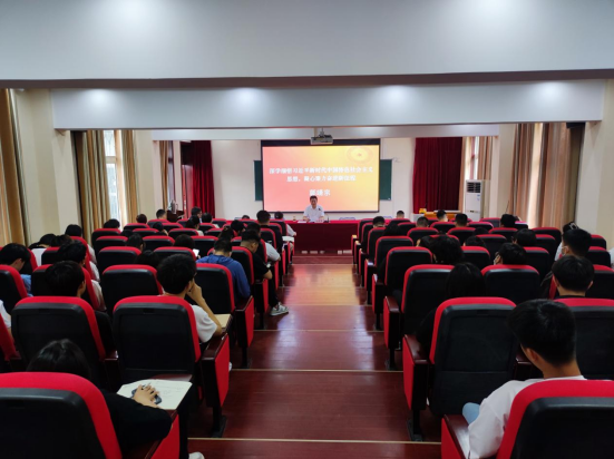 信阳校区党总支书记、主任郭靖宗为校区全体教师和学生干部讲授专题党课。