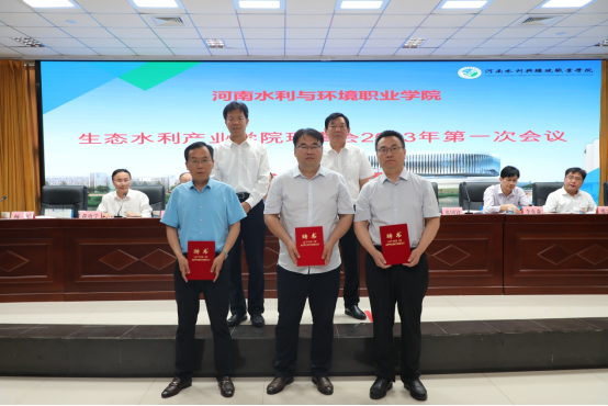 在生态水利产业学院理事会会议上,张凌杰宣读了生态水利产业学院理事会成立文件。理事会审议表决通过了理事会章程,并依照章程规定程序,审查了拟聘院长、副院长的任职资格,表决通过了院长、副院长聘任名单,并现场为产业学院院长、副院长颁发了聘书。