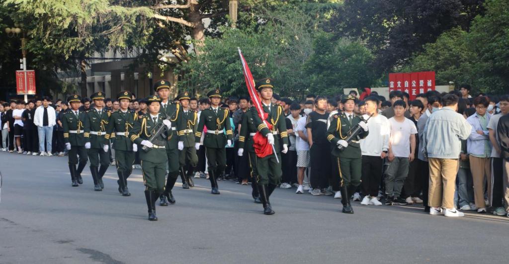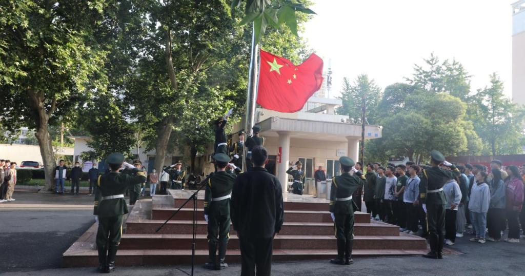 5月22日,机电工程系在花园路校区举行升国旗仪式,系党总支书记王建军、全体学管老师及在校生参加。