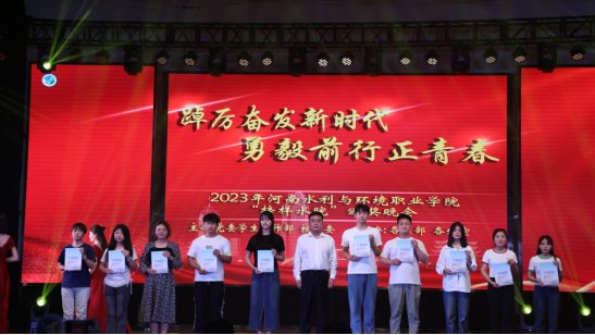 颁奖晚会精彩纷呈,从“觉醒 担当”、“青春 奋斗”、“强国 有我”三个篇章进行了演绎。唯美的《书简舞》、慷慨激昂的朗诵《红旗渠精神》、精彩的豫剧表演《朝阳沟》、帅气的街舞表演《耀舞青春》、激情的合唱《我的未来不是梦》...每个节目都展现了水环学子的傲人风采和良好精神面貌。最后,晚会在《星辰大海》的歌声中圆满落下帷幕。
