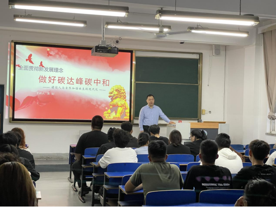 5月29日,环境工程系教师党支部书记、系主任张剑以《全面贯彻新发展理念做好碳达峰碳中和》为题,为教师党员及学生发展对象讲授专题党课。