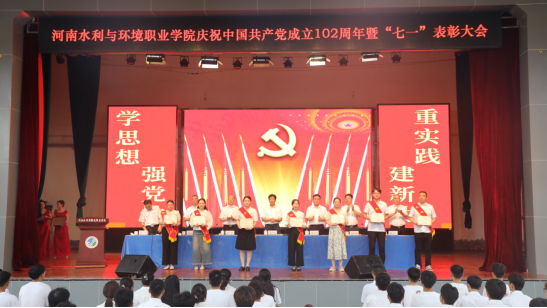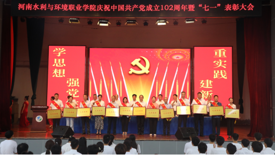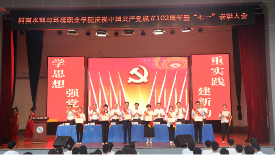 李广慧代表学校党委向受表彰的先进集体和个人表示热烈的祝贺和崇高的敬意,向全校广大党员致以节日的祝贺和诚挚的问候。他回顾了建党102年以来的光辉历程,总结肯定了我校过去一年党建工作取得的成绩,并围绕党的政治建设、思想建设、组织建设、作风建设、纪律建设,对学校党建工作提出要求。一要以党的政治建设为统领,坚决做到“两个维护”;二要以党的思想建设为根本,坚持不懈用习近平新时代中国特色社会主义思想凝心铸魂;三要以党的组织建设为基础,全面落实新时代党的组织路线;四要以党的作风建设为抓手,始终保持风清气正的政治生态;五要以党的纪律建设为保证,不断提高一体推进不敢腐、不能腐、不想腐的能力和水平。广大党员要强化思想淬炼、政治历练、实践锻炼,坚决扛起为党育人、为国育才崇高使命;要深刻理解和把握新时代职业教育发展的新要求,努力培养德智体美劳全面发展的社会主义建设者和接班人;要练就干事创业的真本领,为实现现代化水环学院高质量发展贡献智慧和力量。