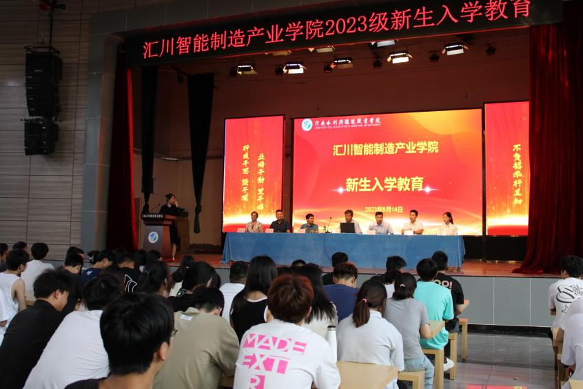9月14日,汇川智能制造产业学院举行2023级新生入学教育大会。学院党总支书记武凤翔教授、院长王瑷珲教授、副院长王展慧,理事闫荣友、马蕾蕾出席,优秀教师代表胡小树、崔雯雯和全体教职工以及2023级新生参加。