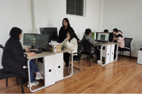 参赛团队在认真进行园林景观设计虚拟仿真赛前训练