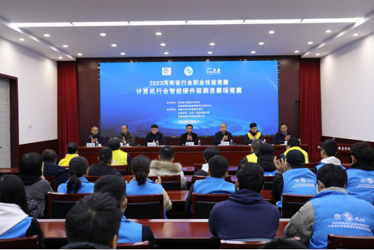 11月25日,2023年河南省行业职业技能竞赛计算机行业智能硬件装调员赛项在我校花园路校区成功举办。河南省计算机行业协会秘书长张朋、副秘书长郭海晨、郑州市人力资源和社会保障局职业技能鉴定处主任郭正恩、郑州大学计算机与人工智能学院教授徐江峰,我校工会主席魏义军、信息工程系负责人以及40余名参赛选手参加开幕式。开幕式由教务处处长包永刚主持。